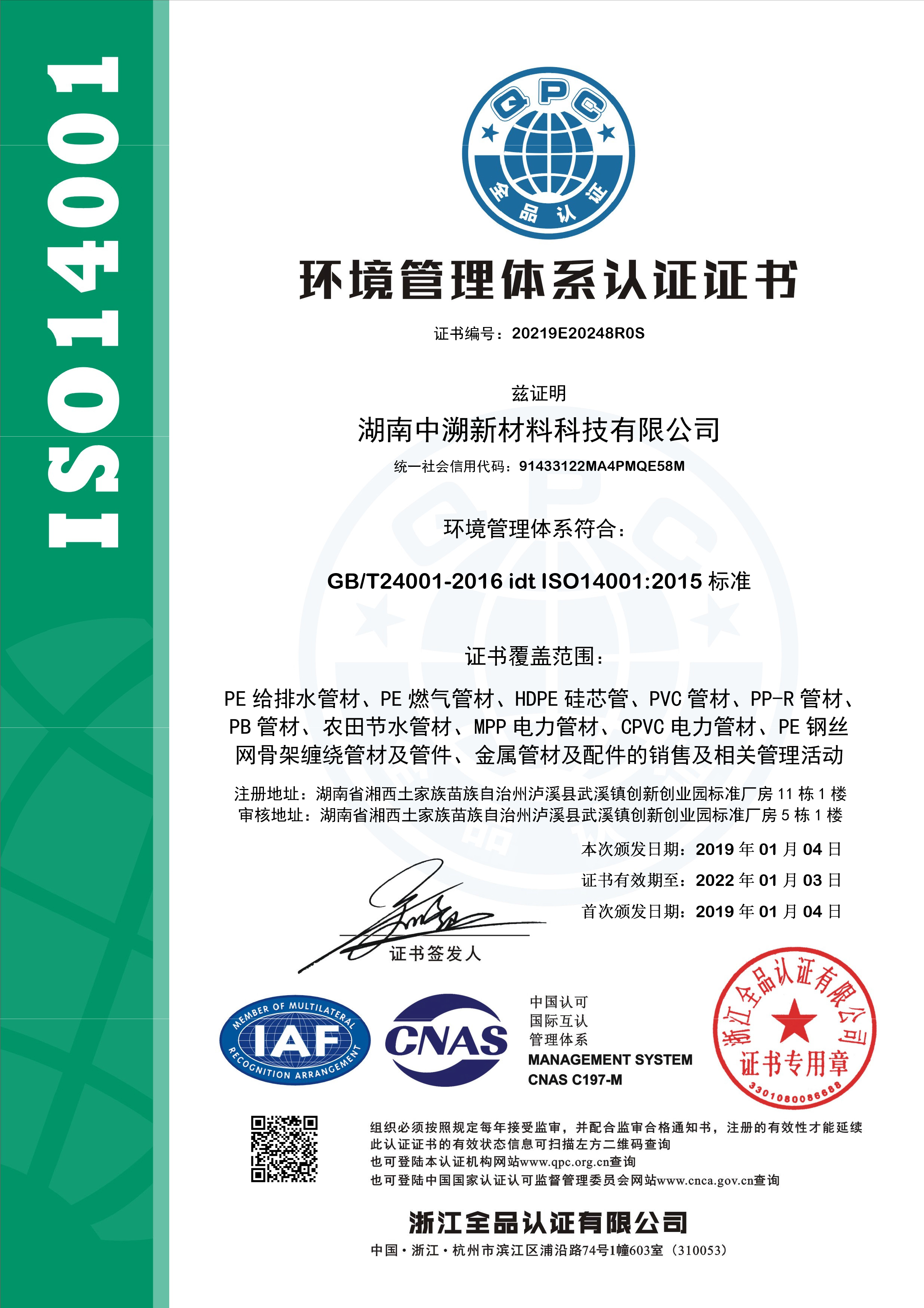 環境管理體係認證證書(shū)