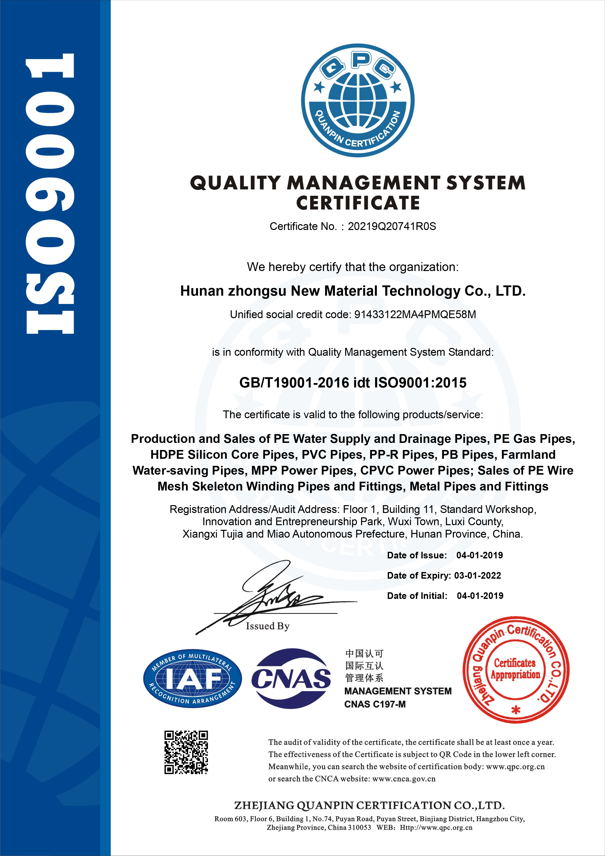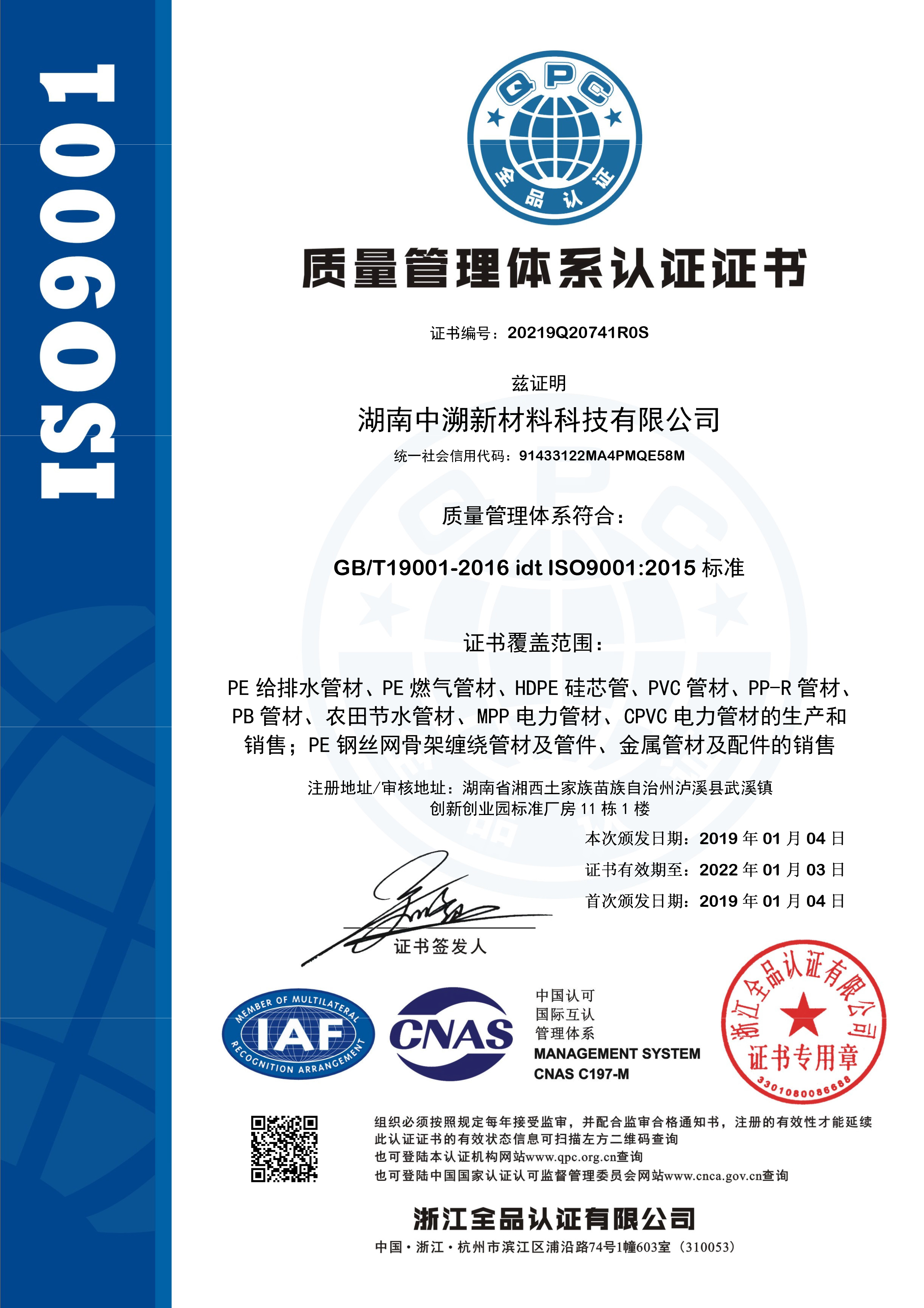 質量管理體係認證證書