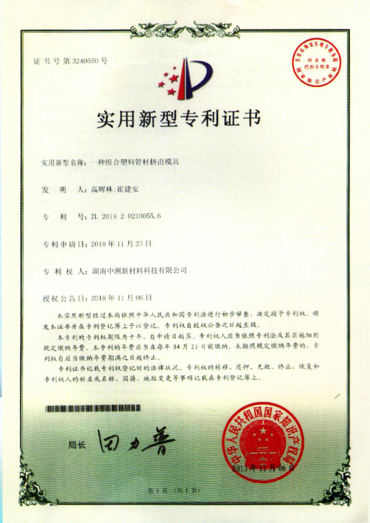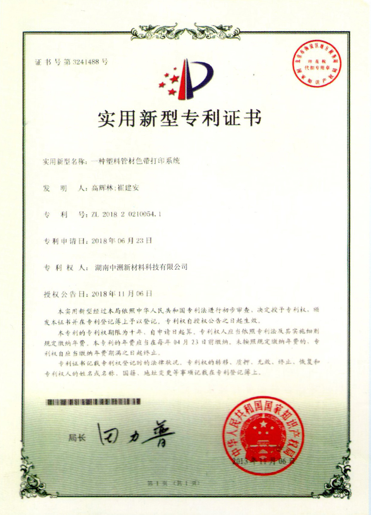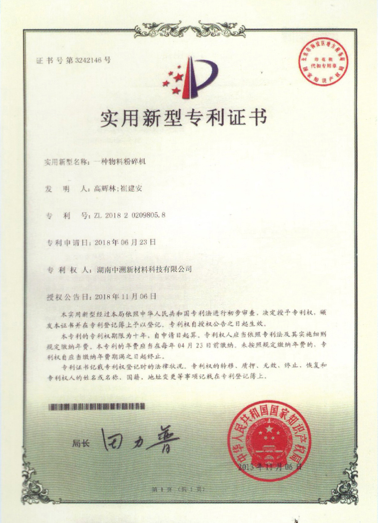實用(yòng)新型專利證書