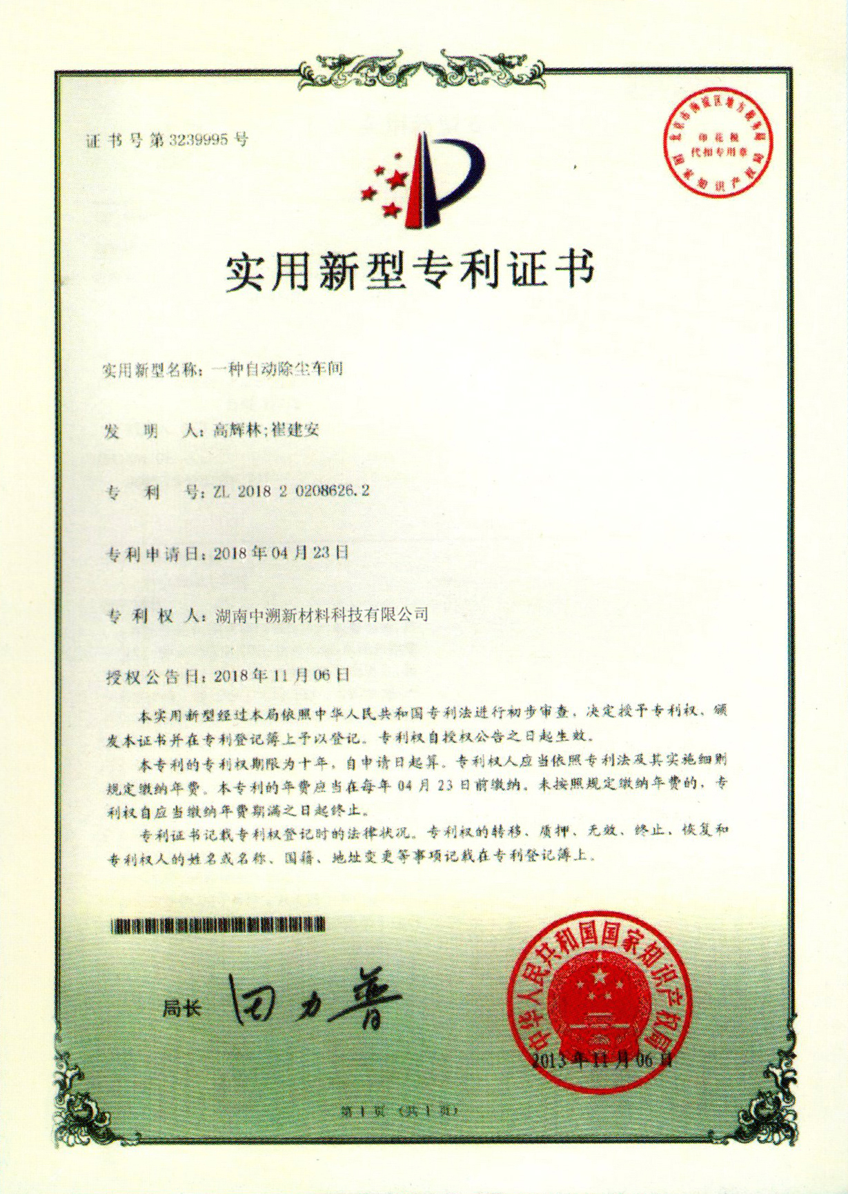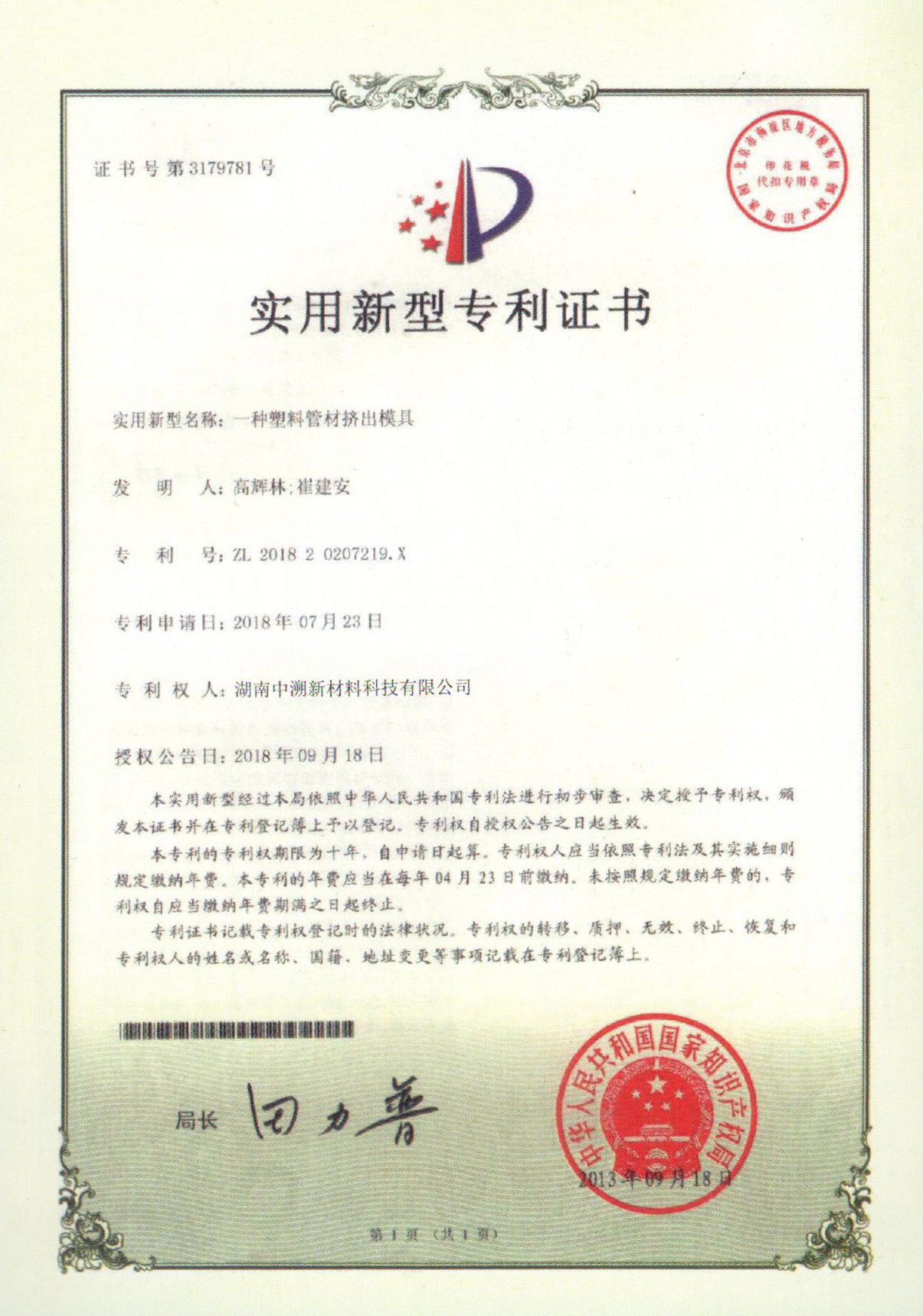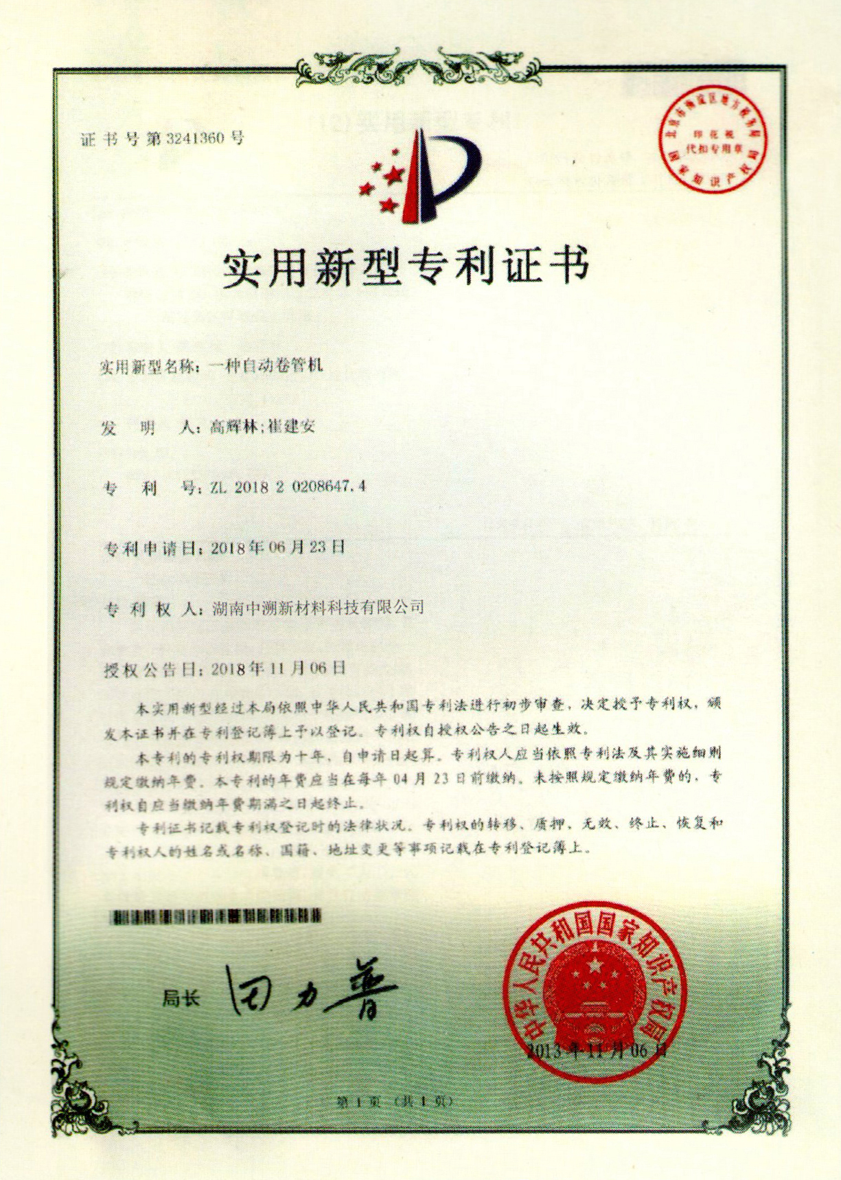實用(yòng)新型專利證書